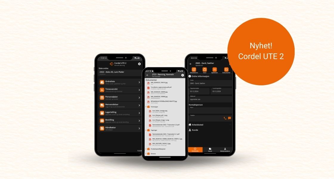 Cordel UTE 2 er en kraftig oppgradert versjon av vår feltapp, laget for å gi deg og dine ansatte en mer effektiv og sømløs arbeidsdag ute i felt. Med ny teknologi og en enklere arbeidsflyt gir appen deg full kontroll over registrering og dokumentasjon – direkte på mobilen.