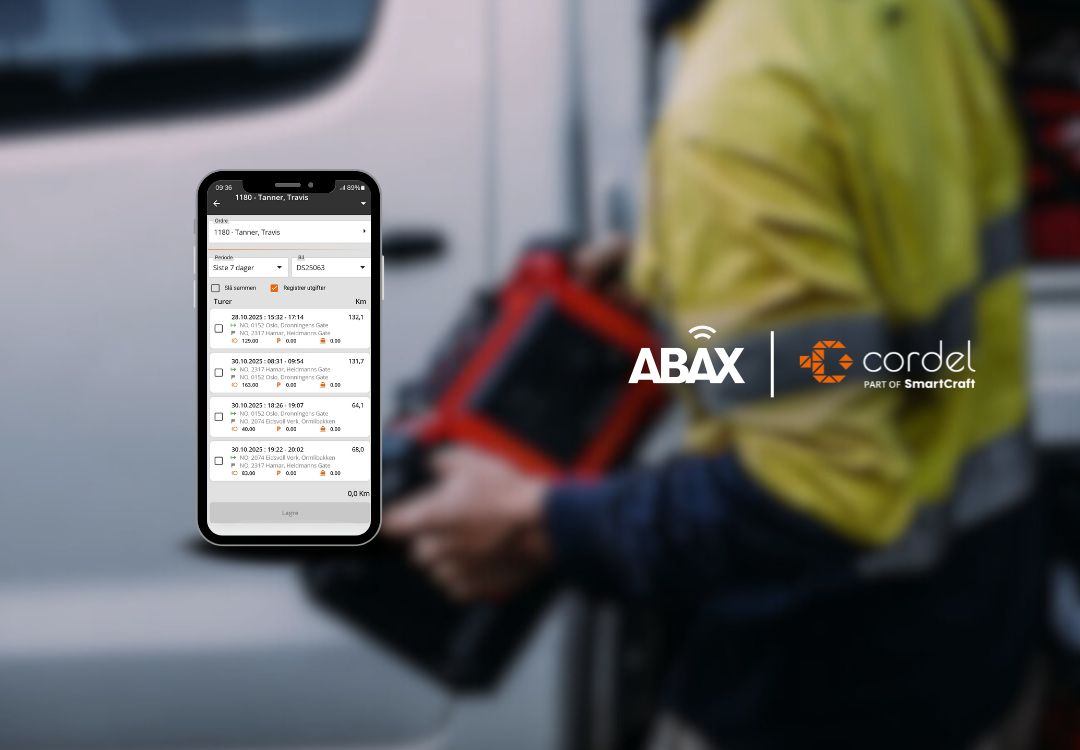Ny og forbedret integrasjon: ABAX kjørebok og Cordel gir håndverkere god kontroll